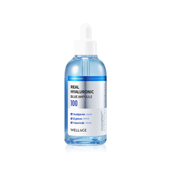 Serum Wellage Real Hyaluronic Blue Ampoule với khả năng cấp ẩm ngay lập tức giúp làn da khô và sần sùi trở nên mềm mịn và đầy sức sống. Đứng Top 1 tinh chất cấp ẩm da chuyên sâu được yêu thích tại Olive Young nội địa Hàn với bảng thành phần siêu chất lượng.